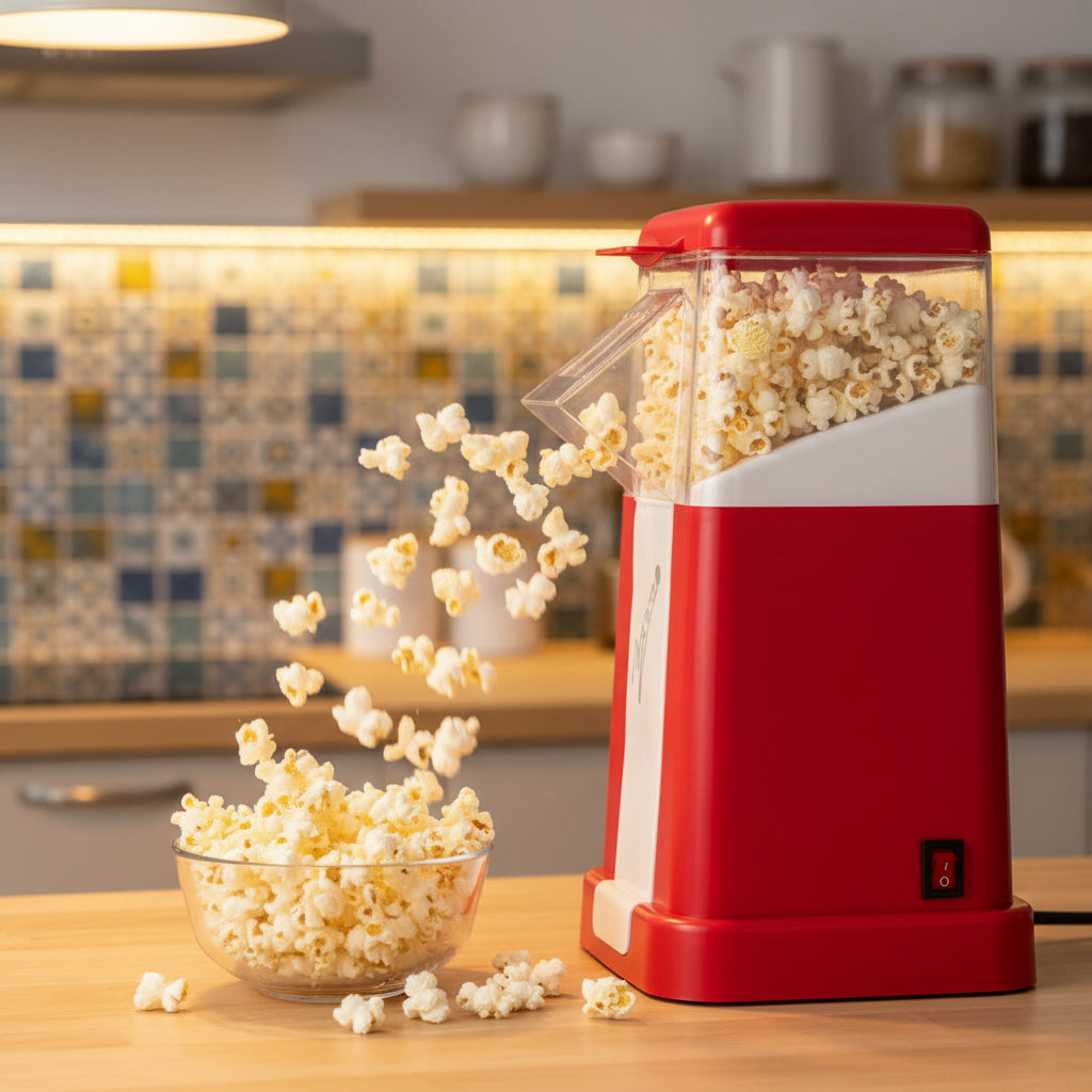 Práctica, elegante y eficiente, lleva el irresistible aroma de las palomitas recién hechas directamente a tu hogar — sin grasa, sin aceite y con un toque de ligereza que encantará a todos.