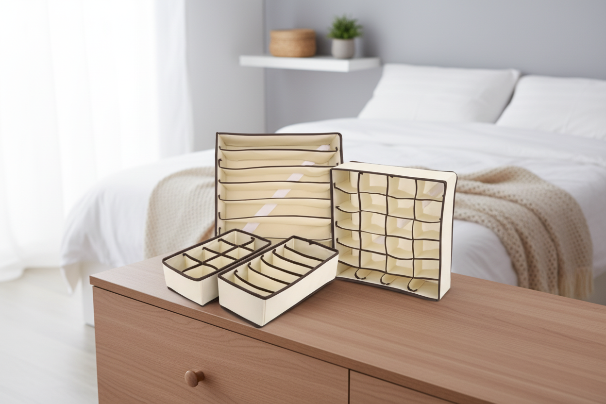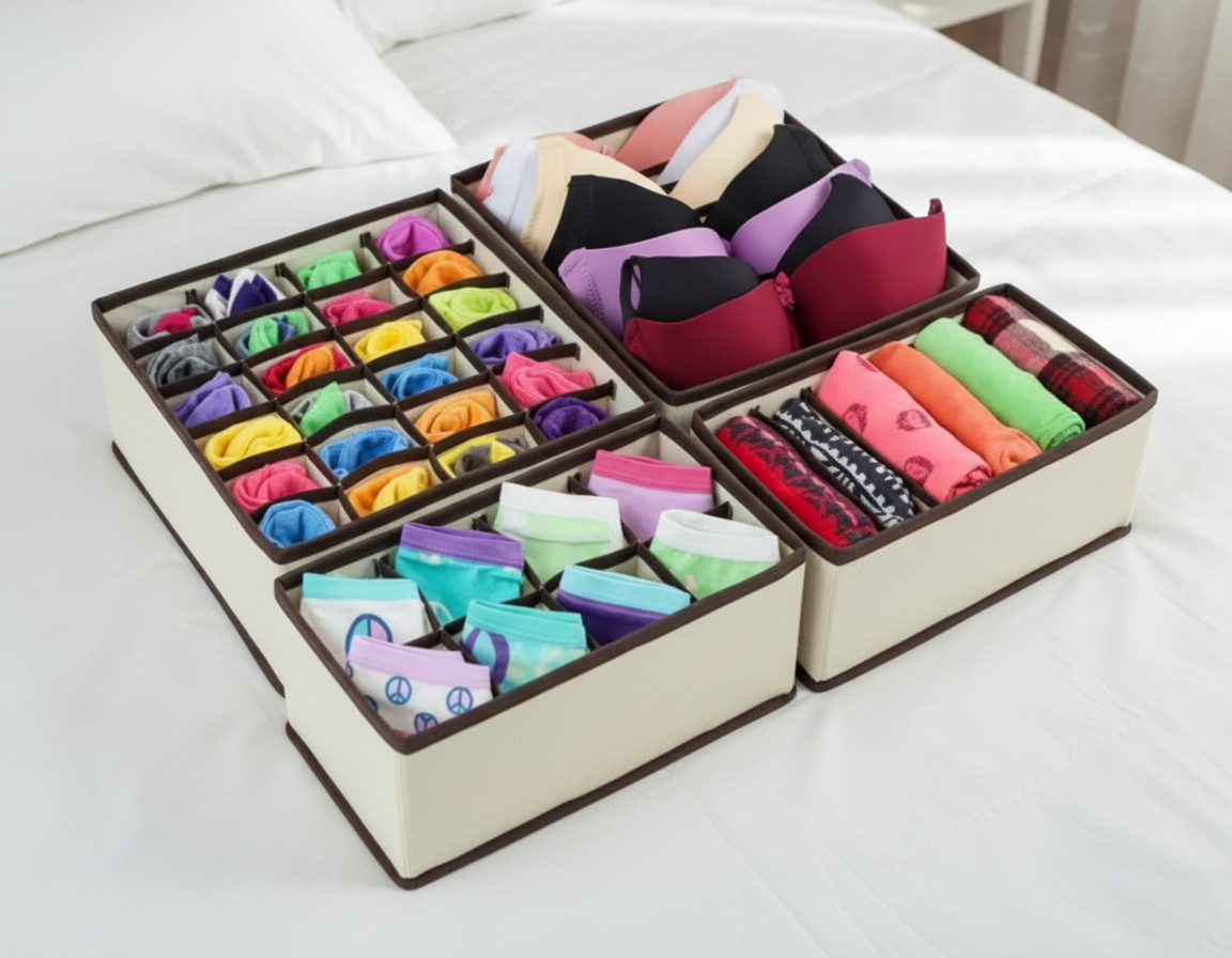 👗 Organizador de Ropa Interior y Medias – Set de 4 Piezas | Orden, Comodidad y Estilo en tus Cajones